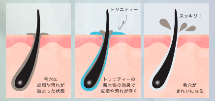 トリニティーの効果で頭皮の皮脂や汚れを除去