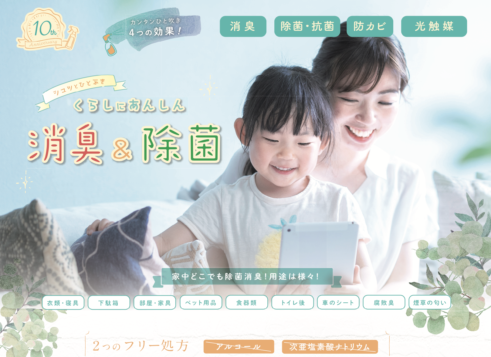 「安心除菌・消臭」は塩素材よりも優れた除菌力を持ち、ほとんどの最近・ウィルス・カビなどに対して効果的、かつ安全に除菌(※)することが出来ます。