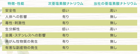 近年話題となっている消毒剤の「次亜塩素酸ナトリウム」とは異なり、強い毒性や刺激性はありません。