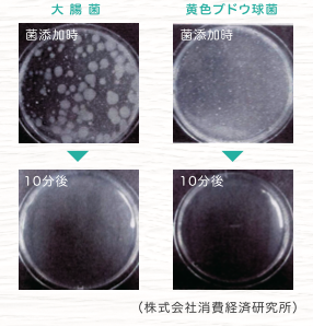 また、従来の「多孔質の活性炭で悪臭を閉じ込めるもの」や「芳香で悪臭を誤魔化す消臭剤」や「悪臭の分子を包み込む」などとは基本的に異なり、科学的に分解して悪臭でない物質に転換することで消臭しています。また、バクテリアやウィルスを強力に酸化させて除菌します。